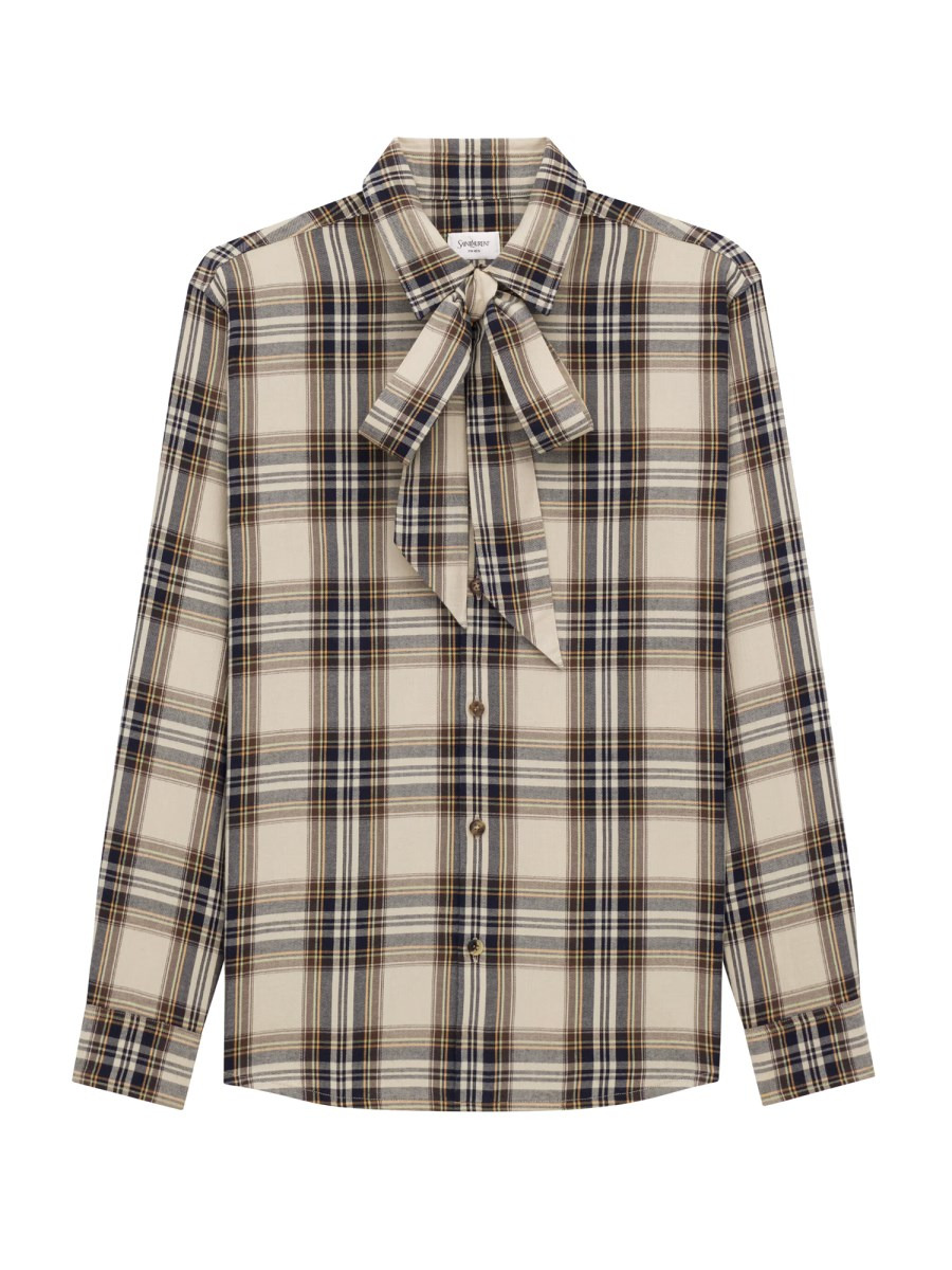 CASSANDRE COTTON TARTAN LAVALLIÈRE SHIRT