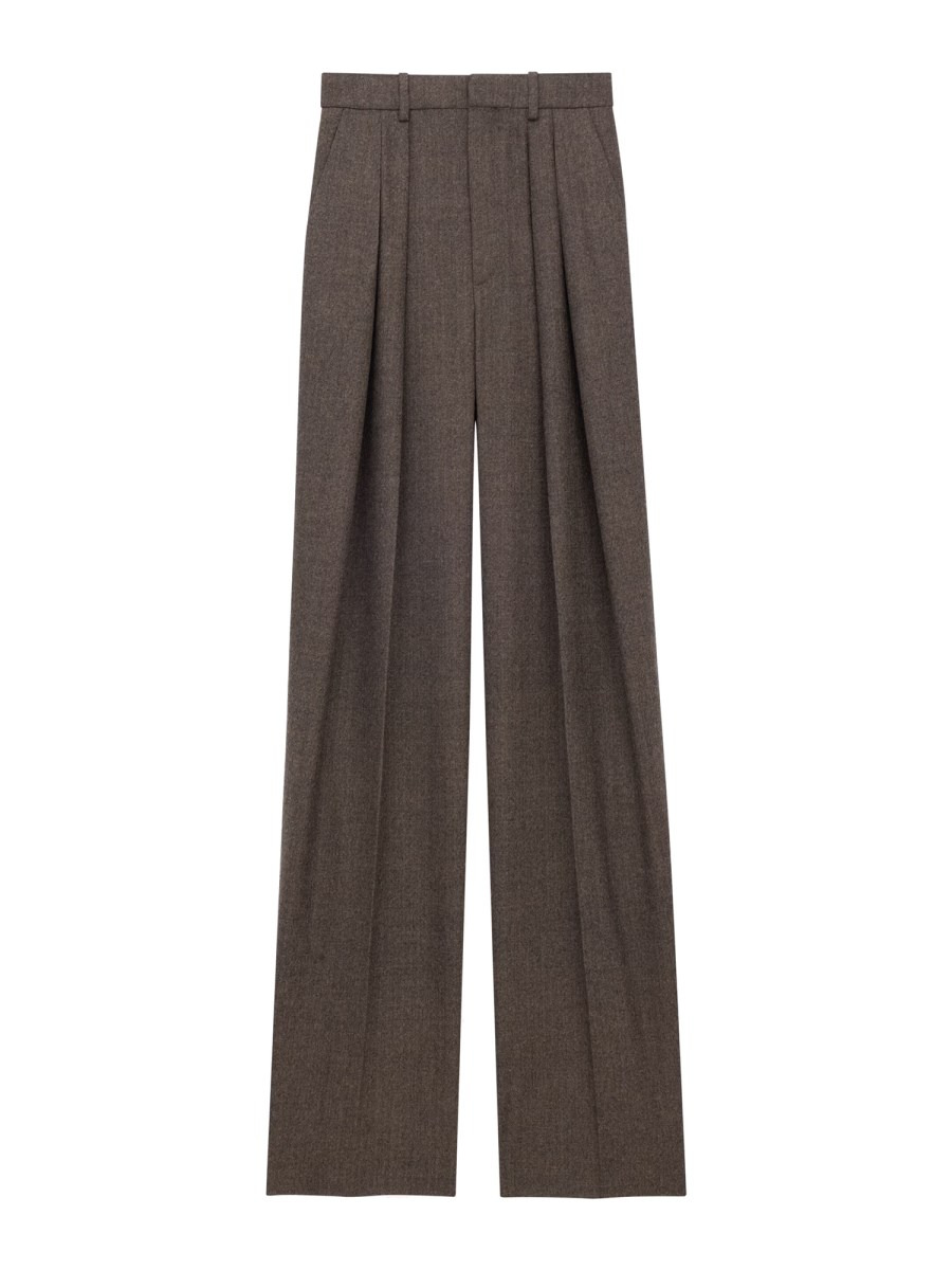 WIDE-LEG PANTS IN WOOL HERRINGBONE PATTERN