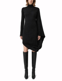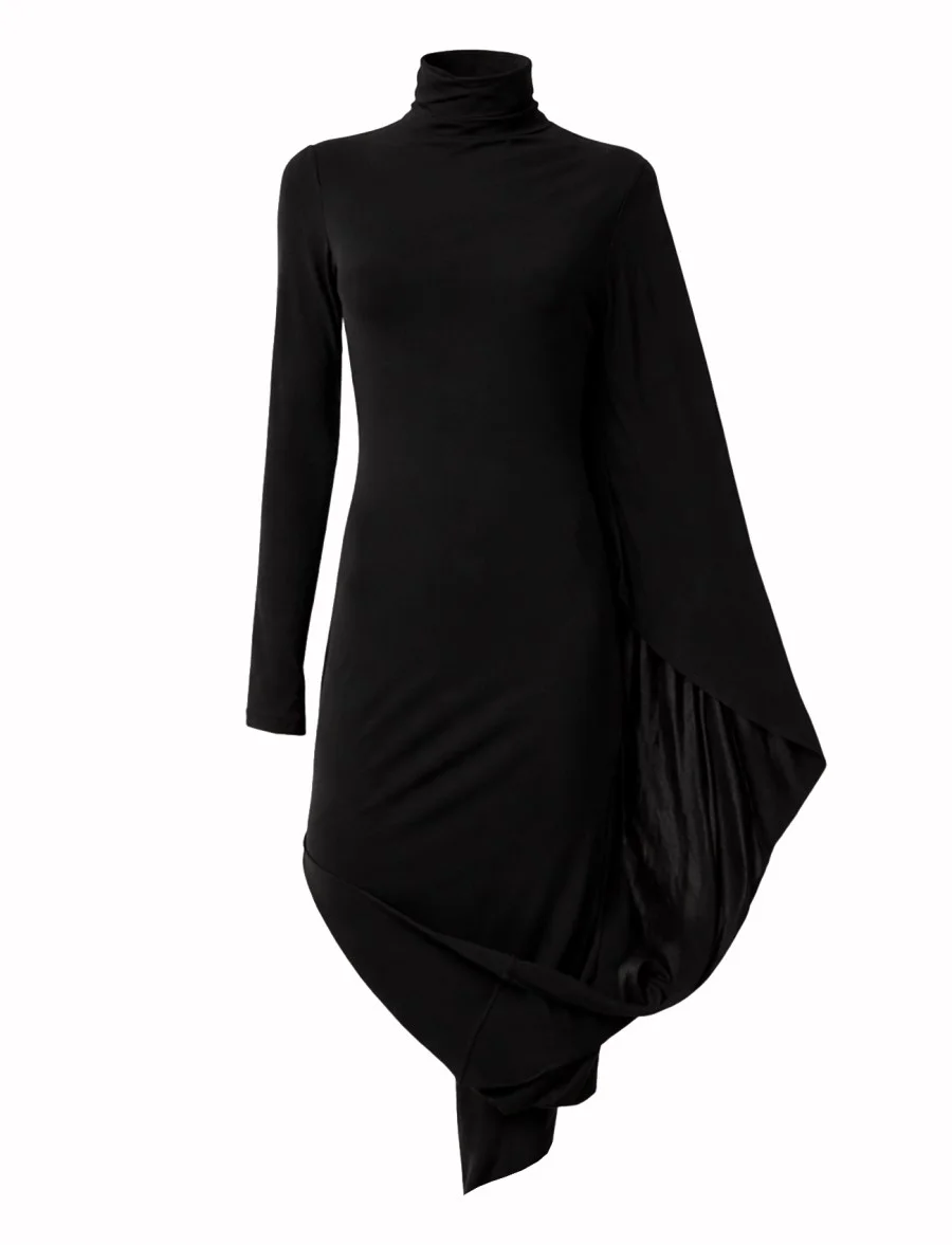 Black Asymmetric Cape Midi Dress