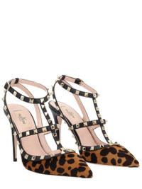 ROCKSTUD PUMPS WITH STRAPS IN PONY-EFFECT CALFSKIN 100MM