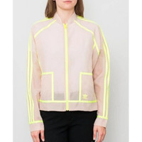 Adidas Jackets adidas AA-42 Track Top Dusty Pearl Lightweight Sheer Mesh Zip up track jacket/top Tan fabric with contrast neon stripes Patch pockets Zipper Unlined SZ M *New without tags