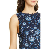 ALICE + OLIVIA Clyde Blue Floral Lace Mini Dress Retail $375 Step out in vintage-chic style in this streamlined sheath dress overlaid with dainty embroidered lace. Jewel neck Sleeveless Exposed back-zip closure Lined 100% polyester Dry Clean Length 36" Shoulder 14" Chest 19.5" Waist 18" SZ 12 *New with tags - See Photos & Measurements