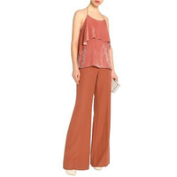 ALICE+OLIVIA Antique Rose Velvet Layer Halter Top Retail $285 Elegant plunging halter tope Layered upper Spaghetti neck tie Scoop neckline. Halter strings tie behind neck. Ruffled overlay bodice. Open back. Slipover style. Viscose/silk. Dry clean. SZ XS *New with tags