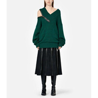 CHRISTOPHER KANE Lace Jacquard Diamond Zip Skirt Crafted in Italy from black lace panels, this high-waisted midi skirt is spliced with functional silver-tone zips - unfasten as many as you dare to give the feminine, subtly flared silhouette a seriously sexy spin. Lace panels Front and back zippers Front rhinestone trim A Line Lined Made in Italy Glass 100%, Acetate 93%, Spandex/Elastane 7% Dry Clean Only Waist 13" Length 32" SZ 40 EU / 4 US *New with tags