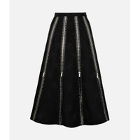 CHRISTOPHER KANE Lace Jacquard Diamond Zip Skirt Crafted in Italy from black lace panels, this high-waisted midi skirt is spliced with functional silver-tone zips - unfasten as many as you dare to give the feminine, subtly flared silhouette a seriously sexy spin. Lace panels Front and back zippers Front rhinestone trim A Line Lined Made in Italy Glass 100%, Acetate 93%, Spandex/Elastane 7% Dry Clean Only Waist 13.5" Length 32" SZ 42 EU / 6 US *New with tags