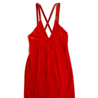 DION LEE Grossgrain Orange Velvet Strappy Slip Dress Retail $590 Elegant slip dress in ultra soft velvet with plunging V Neckline Grossgrain criss cross adjustable straps with gold tone metal accents Dark rich orange color Partially lined Concealed hook and zip fastening at back Mid-weight fabric Non-stretchy fabric Back split Rayon 82%, Silk 18% Dry clean Length (shoulder to hem) 45.5" Chest 14" Waist 14" Hips 17.5" SZ 0 US *New with tags
