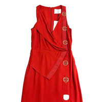 DION LEE Folded Crepe Satin Midi Dress Retail $790 Red folded crepe dress from Dion Lee featuring a Wrap style V neck Sleeveless design Gold-tone hardware Side slit and a mid-length Acetate 75%, Polyester 25% Dry Clean Length (shoulder to hem) 44.5" Shoulder 9.5" Chest 15" Waist 13.5" Hips 18.5" SZ 2 *New with tags - See Photos & Measurements