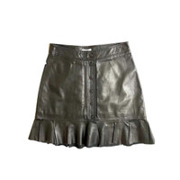 Ganni Lamb Leather Rhinehart Mini Skirt Snap On Ruffle Hem SZ 38/6 US NWT