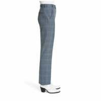 GANNI Blue Plaid High Rise Suiting Pants Ganni aims to design pieces that are reached for 'day in, day out,' and these menswear-inspired check trousers perfectly capture the Danish brand's mission. Zip fly with button closure Front slant pockets; back besom pockets 62% polyester, 34% viscose, 4% elastane Dry clean Inseam 29.5" Front rise 11" Back rise 15.5" Leg opening at hip 10.5" Waist 14" SZ 32 *New with tags