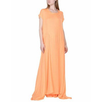 HAIDER ACKERMAN Orange Draped Maxi Dress Retail $890 Ultra soft and light satin style fabric Draped oversized design Unlined, this dress will require either nude undergarments or a slip Fabric: 100% polyester Dry Clean Length 55" - 60"" Chest 23" Shoulder 24" SZ 38 IT / 2US *New with tags