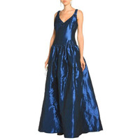 Marchesa Notte Blue Taffeta Satin Ball Gown A Line Embellished Dress NWT