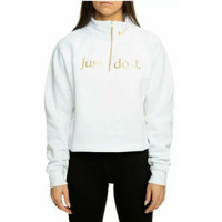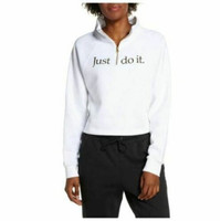 Nike Sportswear Shine Quarter Zip Crop Pullover White Funnel Neck 2XL New