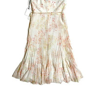 1. State Pleated White Dress Dotted Print Midi Accordion Wrap Dress Sz S NWT