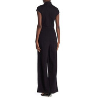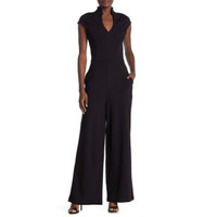 ALEXIA ADMOR Wide Leg Black Jumpsuit Add this split V-neck cap sleeve jumpsuit to your closet completing a trendy ensemble. Split neck Cap sleeves Back zip closure 2 side pockets Solid color Woven construction Lined bodice Fiber Content Shell: 65% rayon, 30% nylon, 5% spandex Lining: 100% polyester Machine wash cold SZ 4 *New with tags