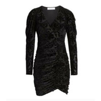 All in Favor Dress Black Long Sleeve Velvet Burnout Bodycon Ruched SZ S NWT