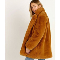APPARIS Sophie Chestnut Brown Faux Fur Coat Chestnut Brown faux fur Sophie mid-length coat from Apparis featuring a notched collar, long sleeves, a lining, two horizontal front inseam pockets and three hook and eye closures along the inside. Lining: Polyester 100% Outer: Acrylic 80%, Polyester 20% Dry Clean Only SZ L *New with tags