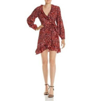 Aqua Red Dress Animal Print Ruffle Wrap Mini Dress SZ XS NWT