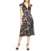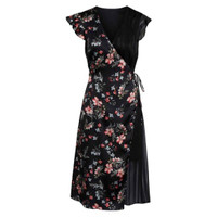 AVEC LES FILLES Floral Satin & Chiffon Wrap Dress Elegant multi textured midi summer dress Floran printed satin with contrast Striped sheer chiffon in all black Wrap design Fully lined V neck Flutter sleeve 100% polyester Length 45" Shoulder 14" Chest 18" Sleeve 3.25" Sz 8 *New with tags