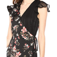 Avec Les Filles Dress Cosmo Flower Satin Chiffon Wrap Black Red Floral Sz 8 NWT