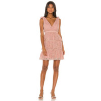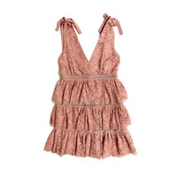 Bardot Roxie Dusty Rose Tiered Layered Mini Dress Lace Shoulder Ties SZ 6-S NWT