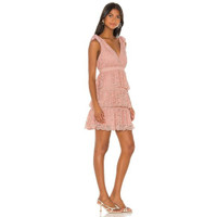 BARDOT Roxie Dusty Pink Tiered Lace Mini Dress V neckline Shoulder bow accents Tiered lace fabric Hidden back zipper Sleeveless Lined Self: 60% cotton, 40% nylon Lining: 100% poly Hand wash cold Length 32.5" Chest 16" Waist 14" SZ S/6' *New with tags - See Photos & Measurements