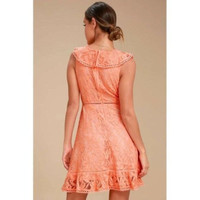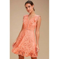 BB Dakota Rease Lace Ruffle Detail Fit And Flare Short Dress in Orange S NWT