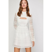 BCBGeneration Lace Mini Dress Peak A Boo Long Sleeve Flare Dress Sz 12 NWT