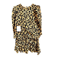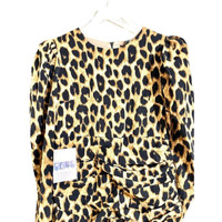 Beulah Style Leopard Print Puff Sleeve Animal Print Cocktail Dress SZ L NWT