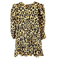 BEULAH Style Leopard Print Draped Puff Sleeve Mini Dress Elegant stand out piece features Mini length Crew neck Puff sleeve gathered skirt with flared hem Lined 100% Polyester Hidden back zipper length 36.5" Shoulder 15" Chest 20" Waist 17" Hips 21" Sleeve 23" SZ L *New with tags. See photos & Measurements