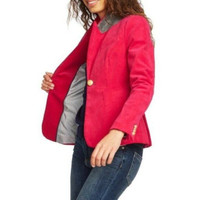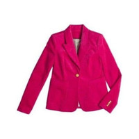 COURT & ROWE Pink Peak Lapel Corduroy Blazer Golden crested buttons and striped lining are the nautical icing on this preppy corduroy blazer with a single-button closure and peaked lapels. Front button closure Peaked lapels Four-button cuffs Chest welt pocket; front patch pockets Dual back vents Lined 98% Cotton 2% Spandex Dry Clean True to size Length 24" Shoulder 14.5" Chest 17.5" Sleeve 24" SZ 2 *New with tags