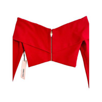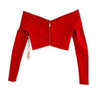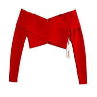 Cushnie Et Ochs Issa Red Crop Top Off The Shoulder V Neck Sz 0 NWT