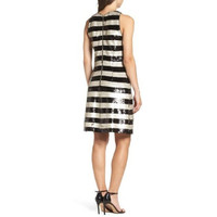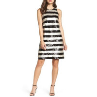 Eliza J Sequin Striped Shift Cocktail Dress Gold Black Reversible Sequin 6 NWT