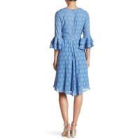 Gabby Skye Dusty Blue Dress Bell Sleeve Tie Waist Wrap Above Knee SZ 14 NWT