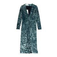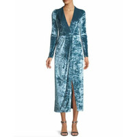 GALVAN LONDON Crushed Velvet V Neck Cocktail Dress Retail $1,325 Long-sleeve Deep-v Hammered Stretch-velvet Cocktail Dress Deep V neckline; wrap-style front. Long sleeves. A-line silhouette. Hidden back zip. Slit front. Ankle-length. Polyester/nylon/spandex. Lining, nylon/lyocell. Made in UK. Length (shoulder to hem) 52" Shoulder 15" Chest 20" Waist 14.5" Sleeve 24" SZ 8 US *New with tags