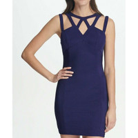 Guess Dress Cutout Halter Neck Scuba Knit Mini Sheath Dress BLUE SZ 4 NWT $108