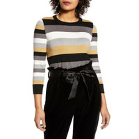 Halogen X Atlantic-Pacific Metallic Striped Gold Silver Sweater SZ XS NWT
