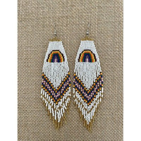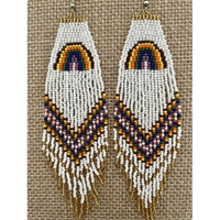 Handmade Miyuki Seed-Bead Fringe Dangling Earrings Rainbow White Multi NWT
