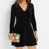 JUICY Couture Velvet A Line VNeck Black Mini Dress