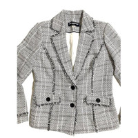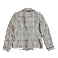 Karl Lagerfeld Paris Button Tweed Fringe Jacket Blazer This stylish tweed jacket is adorned with fringed trim. Notch collar Long sleeves Button cuffs Button front Button flap pockets Fringed trim Lined 100% Polyester Dry clean Length 24.5" Shoulder 15" Chest 20" Sleeve 24.5" SZ 8 *New with tags. See Photos & Measurements