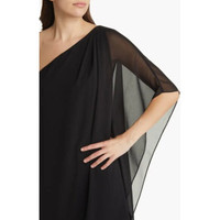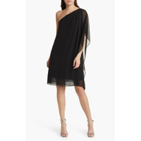 KOBI HALPERIN Sabrina One Shoulder Chiffon Dress in Black Retail $398 Make an eye-catching impression in this shoulder-baring shift crafted from smooth chiffon with a drapey long sleeve. One-shoulder neck Single long sleeve 100% polyester Dry clean Length 37" SZ S *New with tags