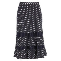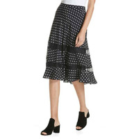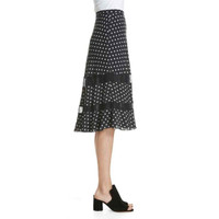 LEWIT 100% Silk Polka Dot Lace Trim Midi Skirt Retail $299 Turn up the charm of any look with this A-line skirt featuring a sweet trifecta of ruffled tiers, polka dots and delicate lace Hidden side-zip closure Lined 100% Silk Dry clean Length 27.25" Waist 13.5" SZ 6 *New with tags - See Photos & Measurements