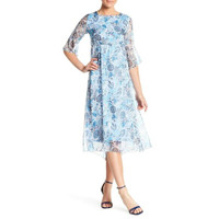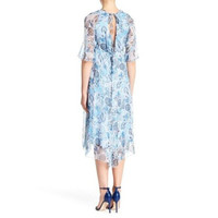 Lola Midi Dress Blue Floral Print Sheer Chiffon Cocktail Summer SZ L NWT $175