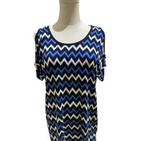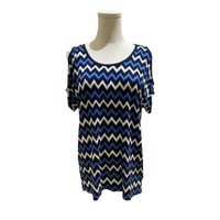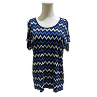 Michael Kors Blue Cold Shoulder Jersey Knit Blouse Casual geometric print top Scoop neck, short sleeves, cold shoulders Unlined Lightweight jersey knit 95% rayon, 5% elastane Machine wash cold Length 26" - 29" Chest 19.5" SZ S *New with tags