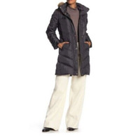 Michael Kors Missy 3/4 Down Faux Fur Hooded Quilted Jacket Gun Metal SZ XS NWT