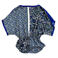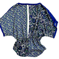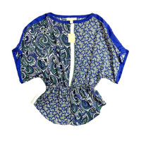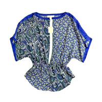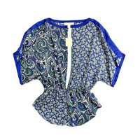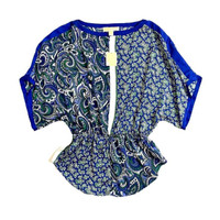 Michael Kors Paisley Print Satin Dropped Shoulder Blouse Top Blue Top Sz 4 NWT