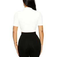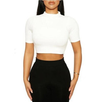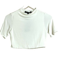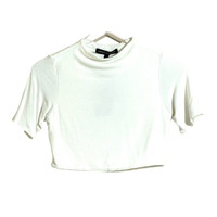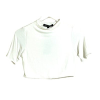 Naked Wardrobe White Crop Top Mock Neck Short Sleeves Top Sz L NWT