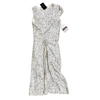 NARCISO RODRIGUEZ Ink Splatter Print Gather Silk Dress retail $1,995 Narciso Rodriguez cocktail dress in ink splatter pattern Gathered front with ruffle detail Gathered back Boat neck Sleeveless, cap sleeve on the left Hidden back zip Sheath silhouette Midi length. Silk Made in Italy Color: white with black splatter Length 44.5" - 45.5" Chest 16.5" Waist 14" SZ 40 IT *New with tags. See Photos & Measurements