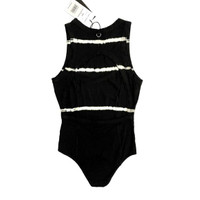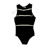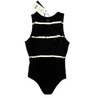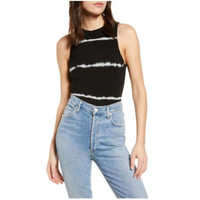 Ninety Percent Striped Tie Dye Open Back Short Sleeve Black Bodysuit SZ S NWT