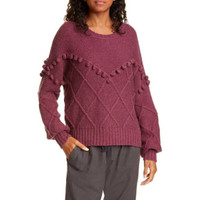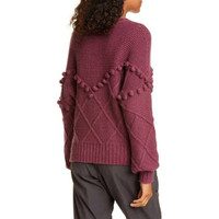 NSF Kaaya Textured Pullover Pom Pom Mixed Knit Sweater Purple SZ L NWT $398