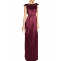 RAOUL Gown Burgundy Red Satin Column Embellished Long Dress SZ 0 NWT $705